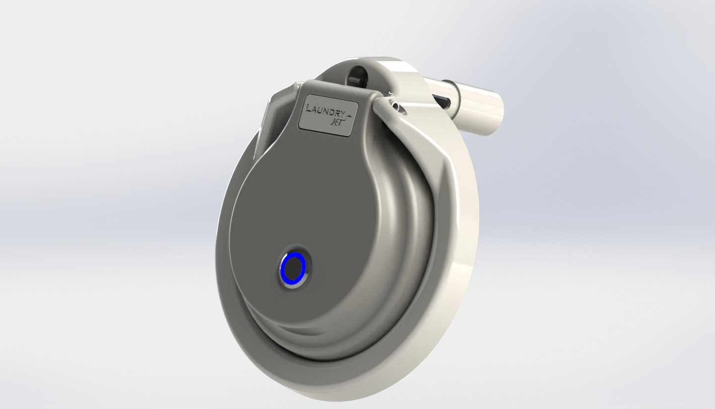 Stylové vhozové stěnové porty dodáváme v barvě bílé nebo černé. Na zakázku je též možné objednat i jiné barevné provedení. Stisknutím tlačítka na portu se spustí centrální sací jednotka. Port je osazen elektromagnetickým snímačem detekujícím vložené oblečení. Po 10 sekundách bez detekce dojde k automatickému vypnutí sací jednotky a uzavření portu. Tlumiče na pantech zajišťují po vypnutí tiché uzavření portu. Modrá denní, nebo bílá noční LED dioda v kovovém spouštěcím tlačítku indikuje stav systému. Pro každý port je možné tuto funkci individuálně nastavit. Porty jsou propojeny se sací jednotkou stíněným ovládacím datovým kabelem s bezpečným napětím. Na stěnové porty LAUNDRY JET je poskytována tříletá záruka.